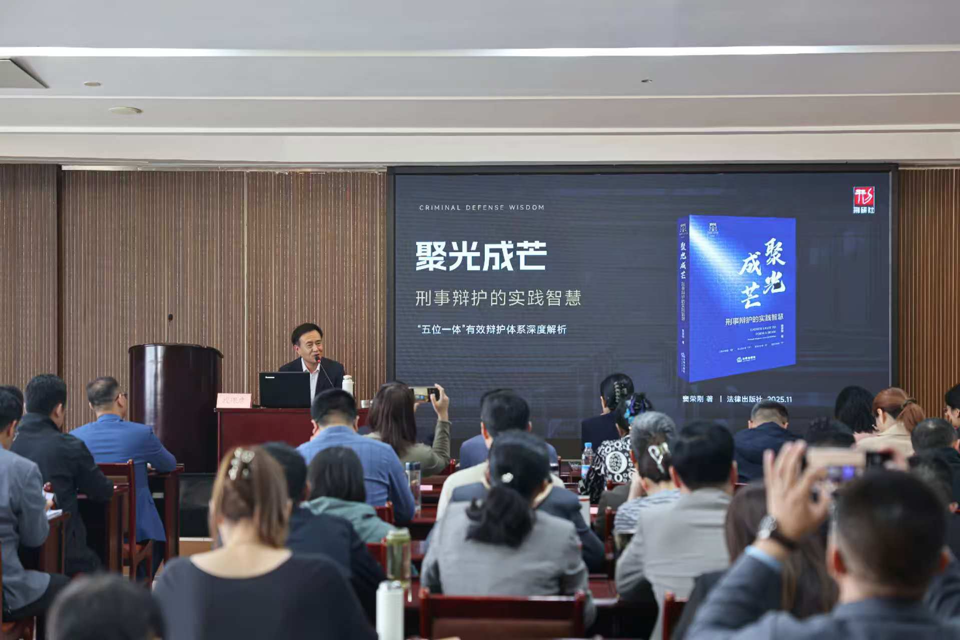 律师刑研社社长、我所合伙人窦荣刚律师深度解析其著作《聚光成芒:刑事辩护的实践智慧》“五位一体”有效辩护体系,从证据审查要细、专业融合要深、程序辩护要准、策略调整要活、情理法理融合五大核心经验及其体系化融合应用六个维度,结合多起典型案例拆解辩护逻辑,传授了可落地、可复制的有效辩护方法,并应枣庄与会律师的要求,进行了现场签名售书。